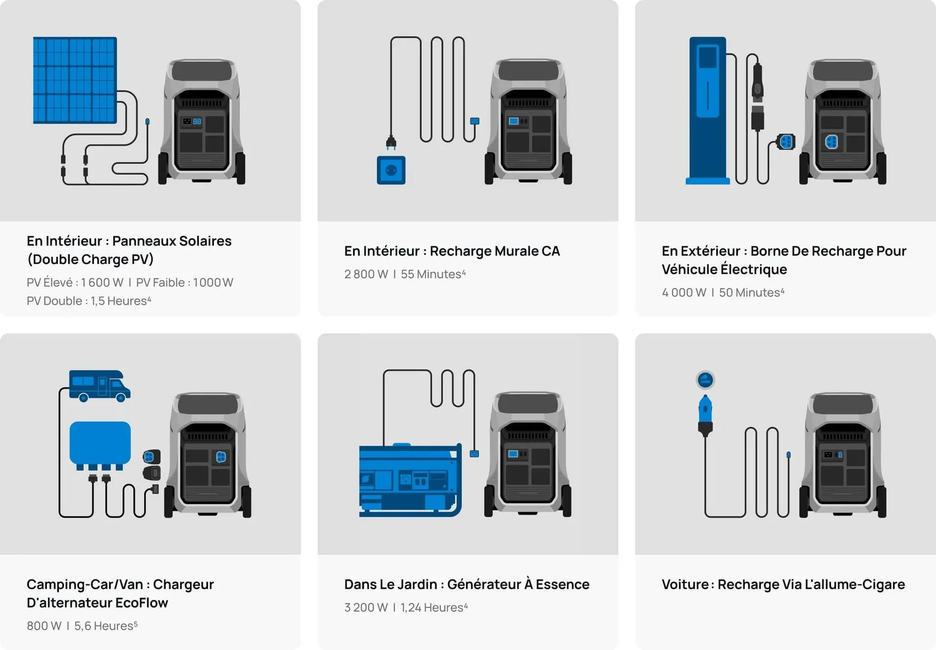 Découvrez la technologie révolutionnaire de recharge rapide X-Stream d'EcoFlow, qui établit une nouvelle norme dans l'industrie. Rechargez de 0 à 80 % en une heure seulement. Combinez plusieurs sources d'alimentation et profitez d'une recharge ultra-rapide jusqu'à 7 000 W.